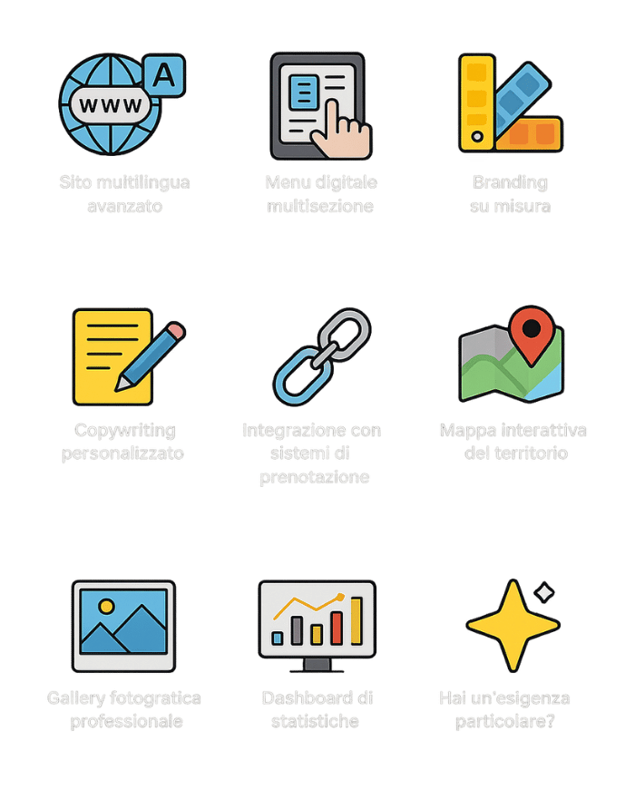 Oggi i tuoi clienti ti cercano sul web prima ancora di sedersi al tavolo. Essere online non è più un’opzione né un lusso: è la base per essere scelti e ricordati, anziché restare invisibili. Una presenza digitale curata trasmette fiducia, racconta chi sei e cosa offri di speciale, ed è la chiave per trasformare chi ti cerca in un nuovo cliente felice. Il tuo locale merita di essere visto, scelto e consigliato ogni giorno.
