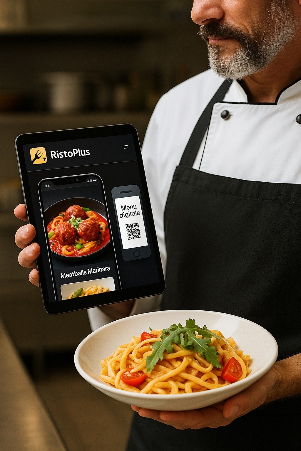 Con RistoPlus hai un sito professionale, un menu digitale moderno con QR e un sistema semplice per ricevere prenotazioni, tutto su misura per il tuo locale. In sole 72 ore sei online, pronto ad accogliere nuovi clienti senza doverti preoccupare di tecnologia, aggiornamenti o complicazioni.
